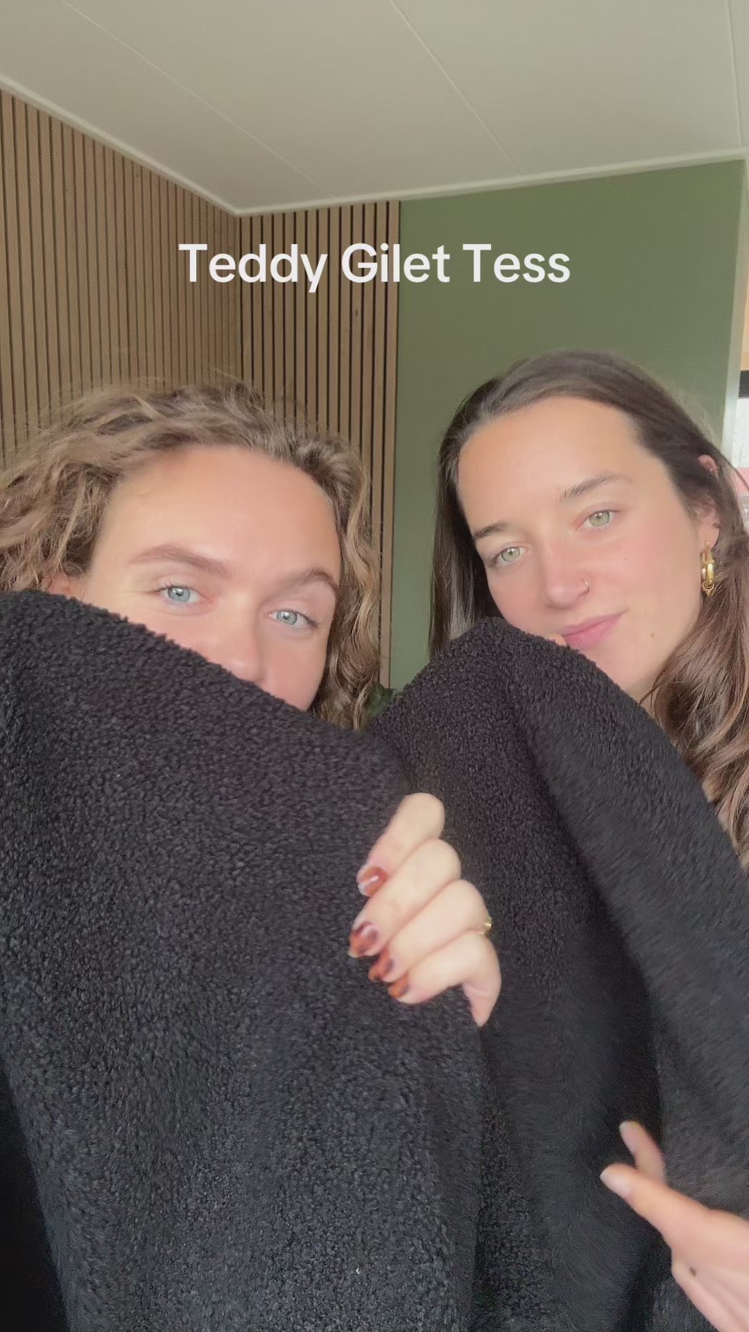 πββ¬π€Gilet Tess is een stoere teddy gilet in een tijdloze zwarte kleur. De compacte structuur van de stof geeft het gilet een krachtige look die perfect past bij een streetstyle outfit. De subtiele bies zorgt voor een verzorgde afwerking, waardoor Tess zowel robuust als stijlvol te dragen is.